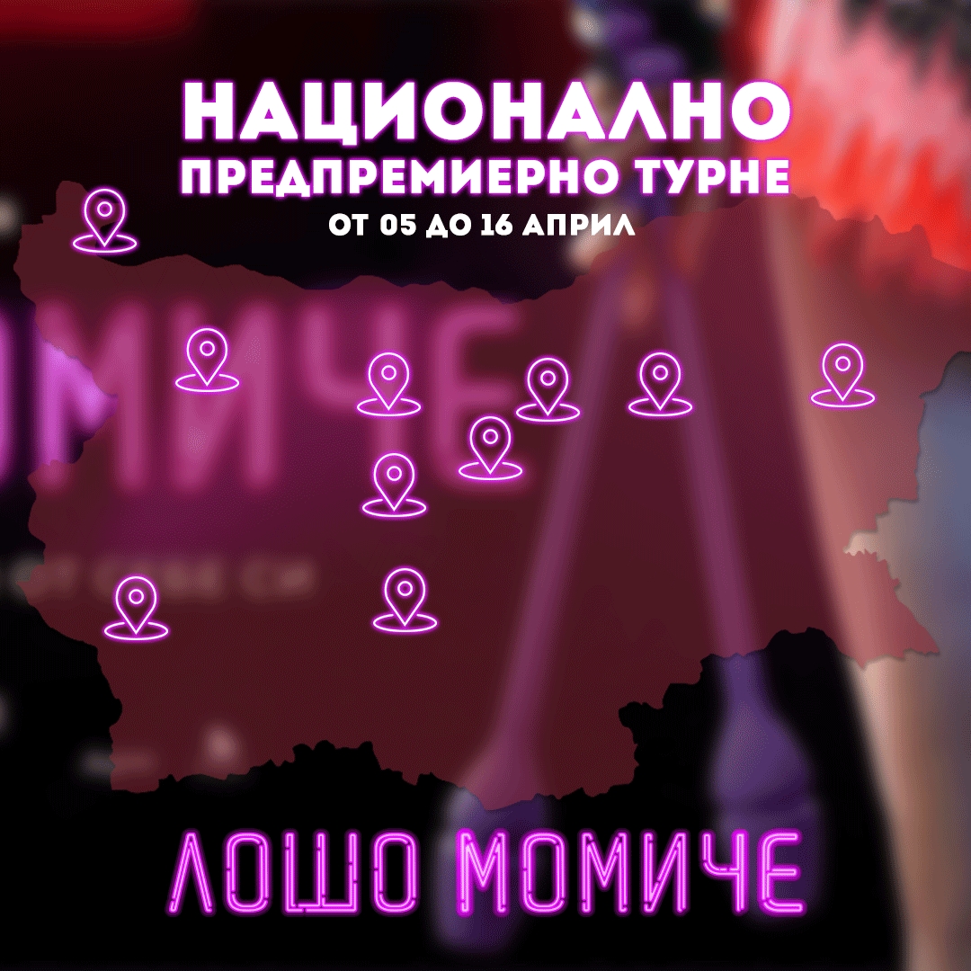 Пловдив (10 април), Враца (13 април), Видин (13 април), Габрово (14 април), Карлово (14 април), Благоевград (15 април) и Ловеч (16 април). Гала-премиерата на продукцията в София ще бъде на 11 април (четвъртък).