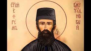 Св. преп. Ефрем Сирин бил родом от Едеса, Сирия – син на благочестиви родители. Млад отишъл в пустинята; станал монах и прекарвал в подвизи.