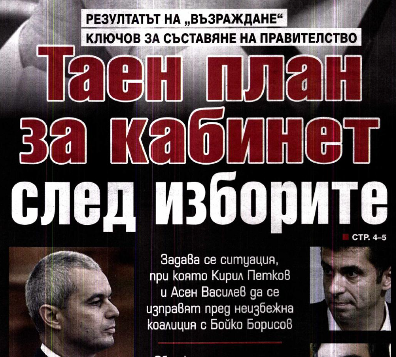 Политически анализатори са на мнение, че ако „Възраждане“ се представи убедително на изборите, то от Америка и Европа ще бъде оказан натиск над „Продължаваме промяната“ да бъде съставен коалиционен кабинет с ГЕРБ, за да бъде изолирана формацията на Костадин Костадинов. Ако се върви по линия на евроатлантизма, в подобен кабинет биха могли да се включат дори представители на ДБ и ДПС. Любопитно е, че от Вашингтон са раздвоени за БСП. Независимо че лидерът на социалистите Корнелия Нинова също ходи на инструктажи в американското посолство, което по-скоро включва социалистите в схемата.