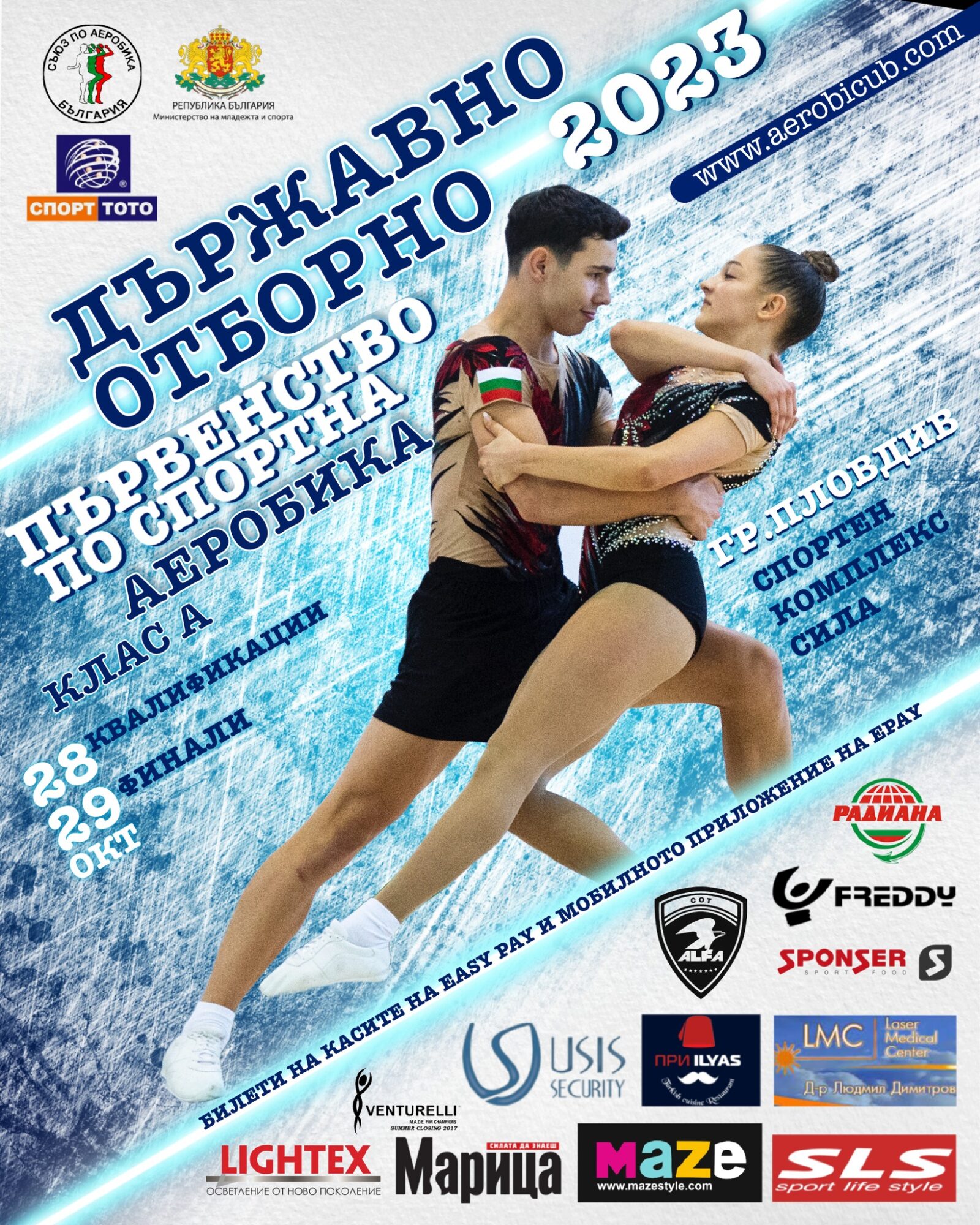 Най-добрите български състезатели ще участват на Държавното отборно първенство по спортна аеробика за деца, юноши и девойки. Надпреварата ще се проведе на 28 и 29 октомври в спортен комплекс „Сила“ в Пловдив, а трофеи ще бъдат раздадени във възрастови групи 7-8, 9-11, 12-14 и 15-17 години.
