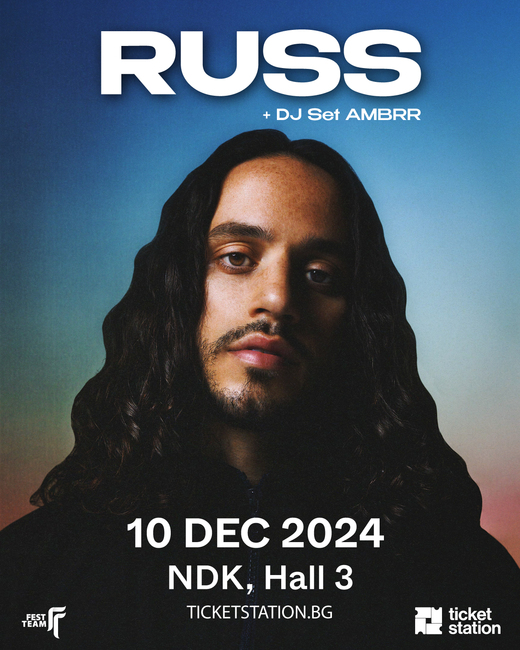 Мултиплатиненият рапър, текстописец и продуцент Ръс (Russ) изнася концерт в София днес, 10 декември, в зала 3 на НДК , съобщават организаторите от Fest Team.