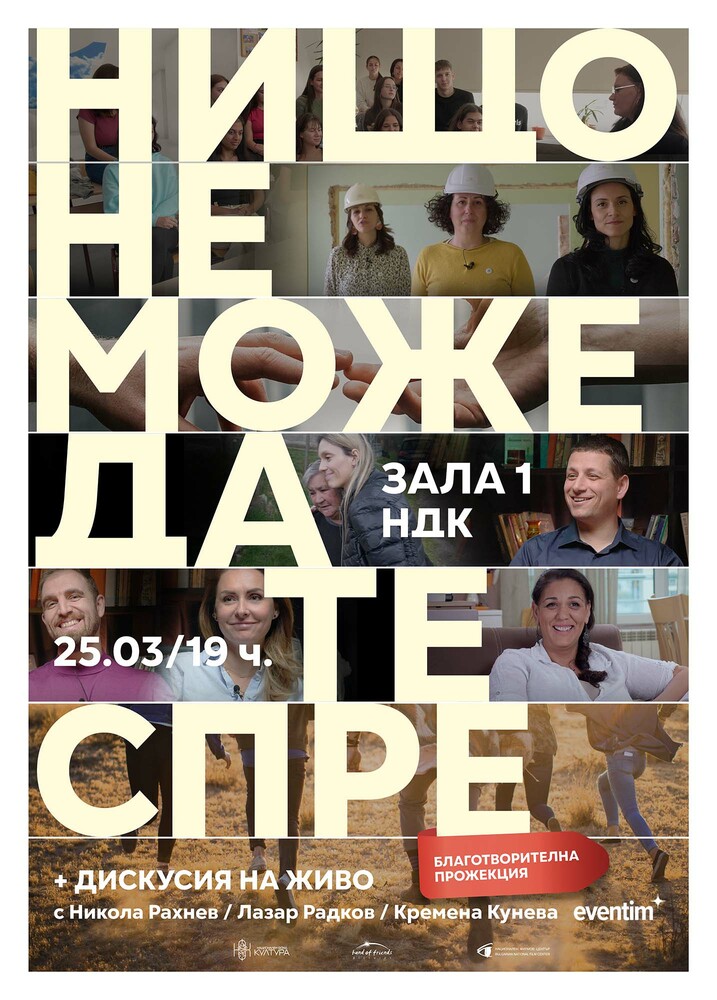 Документалният филм „Нищо не може да те спре“ ще има премиера днес, 25 март, в зала 1 на НДК. Това съобщават от екипа на продукцията, която разказва за добротворчеството в България чрез историите на три от най-големите доброволчески организации, три по-малки инициативи и една спонтанно създадена детска кауза от град Златица.