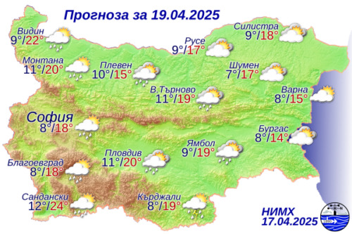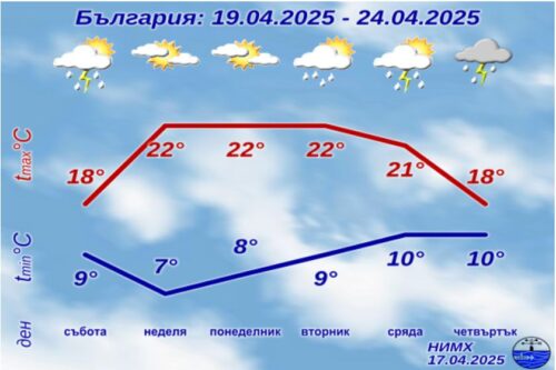 На Великден времето ще е предимно слънчево, с леки следобедни превалявания на отделни места, най-вече в планините. Температурите ще достигнат до 25 градуса, с лек южен вятър.