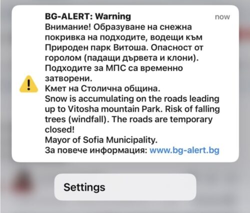 BG – ALERT е задействан за Витоша: Подходите за автомобили временно затворени