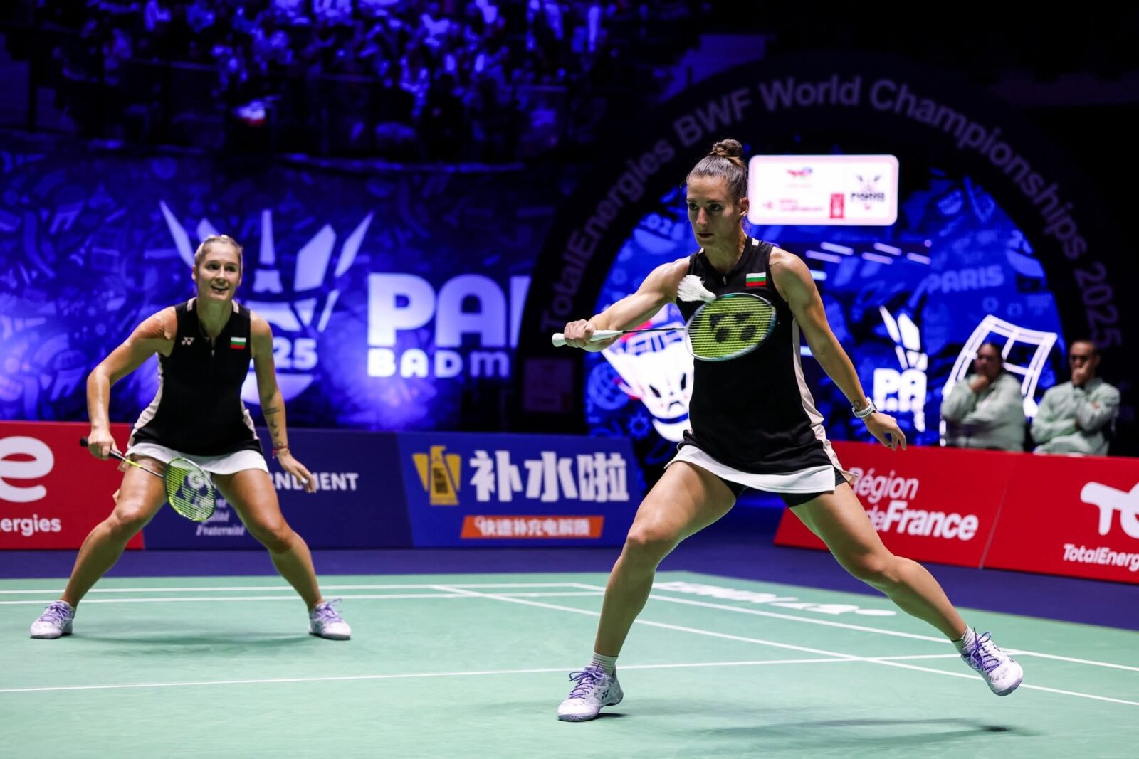 Състезателките на #България, които са пети от Световното първенство в Париж 2025 и европейски шампионки, победиха безапелационно във втория си двубой от надпреварата осмите поставени Кавиприя Селвам и Симран Синхи (Индия) с 21:16, 21:8 за само 29 минути.