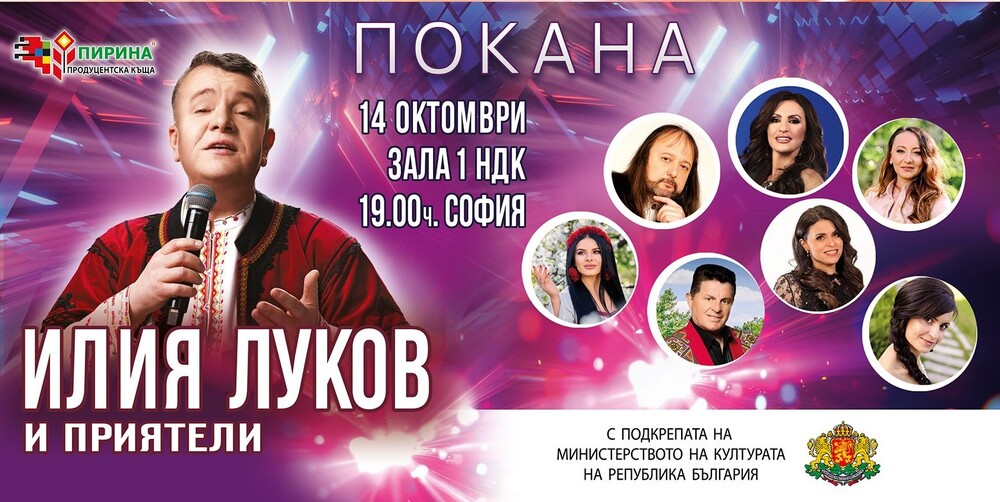 Народният певец и композитор Илия Луков заедно с приятели ще изнесе концерт с кауза на 14 октомври от 19:00 ч. в зала 1 на Националния дворец на културата (НДК), съобщиха от екипа на певеца и продуцентската къща „Пирина“.