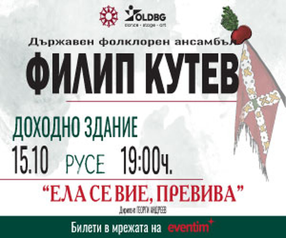 Националният фолклорен ансамбъл „Филип Кутев“ ще представи в Русе спектакъла си „Ела се вие, превива“. Това съобщи продуцентът на концертите на ансамбъла Николай Божков, като уточни, че представлението започва в 19:00 часа тази вечер в Доходното здание в крайдунавския град.