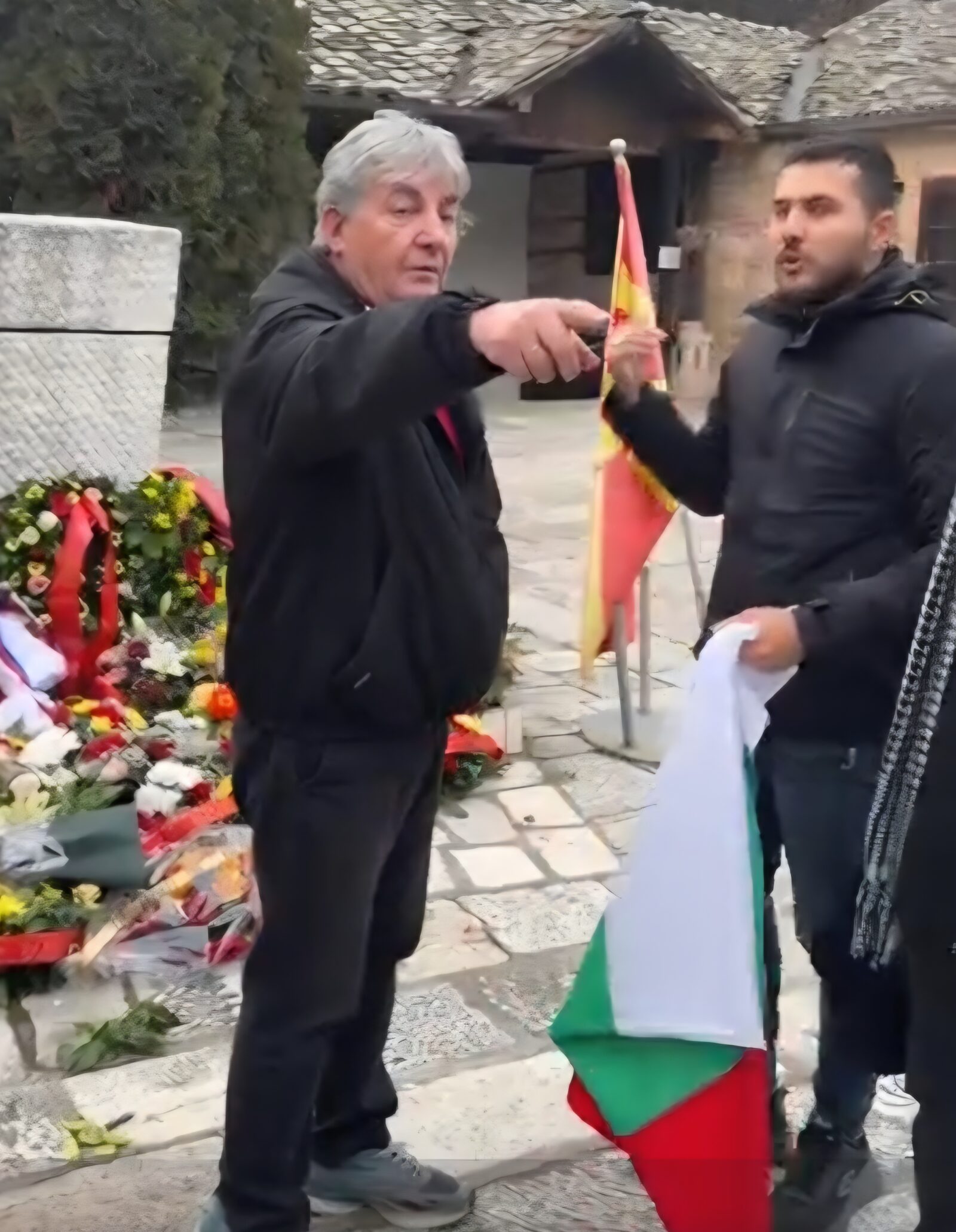Видео, разпространено масово в социалните мрежи, предизвика вълна от реакции, след като показва напрегната ситуация край гроба на Гоце Делчев в двора на църквата „Св. Спас“ в Скопие.